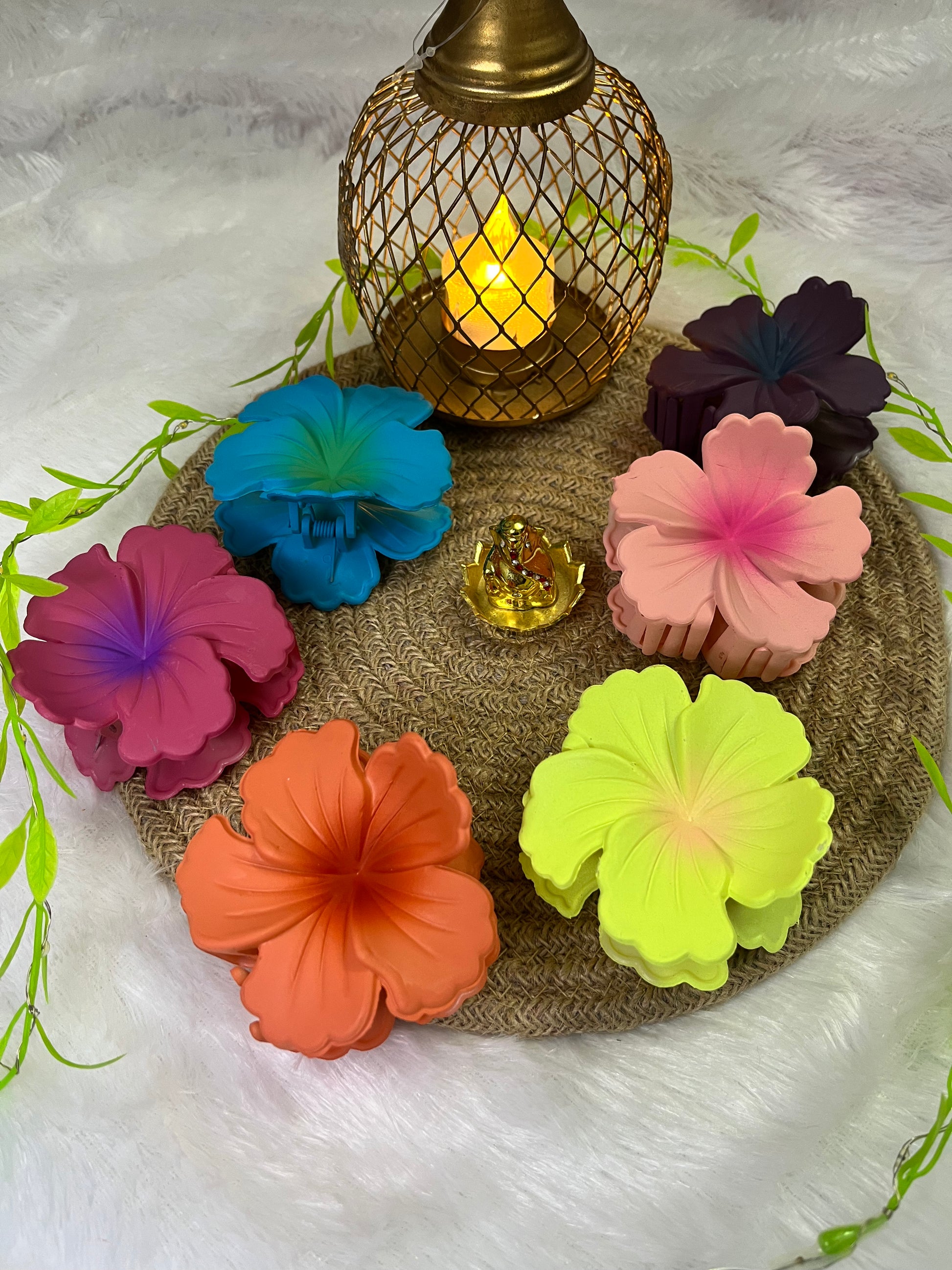 Shop the Dual Colour Matte Hibiscus Hair Claw from Blendora Collections — a premium large floral claw clip with dual-tone matte finish, strong grip, and smooth edges. Perfect for long, thick, curly, or wavy hair. Ideal for everyday wear, gifting, festive looks, and trendy styling.